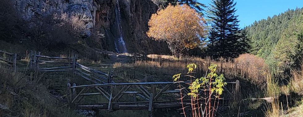 Then came the alleged "wildlife encounter." We heard heavy footsteps in the woods! We froze. We bravely considered turning back for a full ten seconds. Then, like the fearless explorers we are, we continued... for about twenty feet. When we heard a strange knocking sound, the debate was over. Preservation of life (and the avoidance of a Bigfoot headline) took priority. We executed a professional U-turn and bolted down to a peaceful meadow stream to recover from our imagined Sasquatch encounter. We didn't find fall colors there, but we found inner peace and successfully lowered our heart rates below "jackhammer."